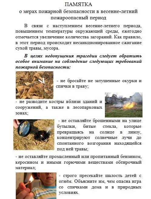 Запрещено разводить костры, сжигать сухую траву и проводить любые пожароопасные работы во всех населенных пунктах!